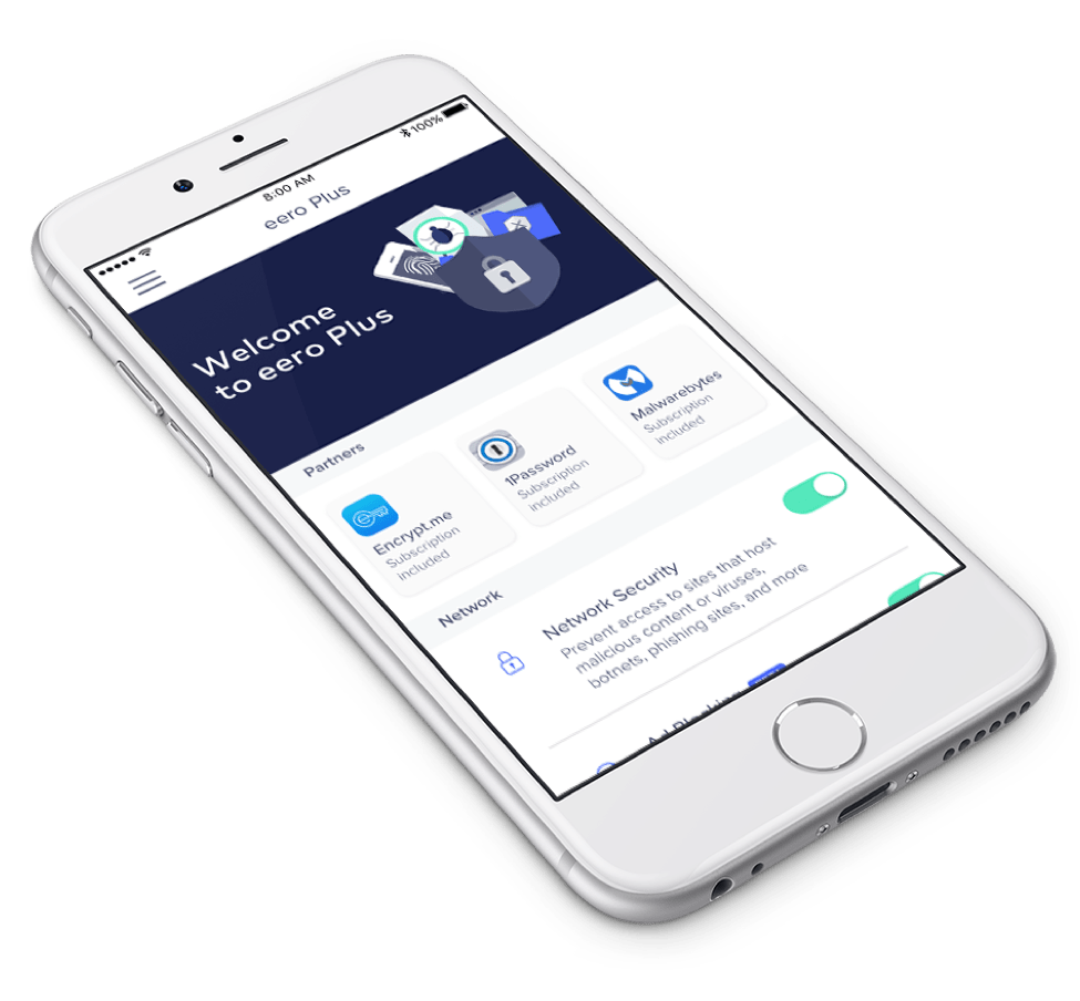 Every component of the eero system uses best-in-class encryption and security protocols to keep your network and data secure.
