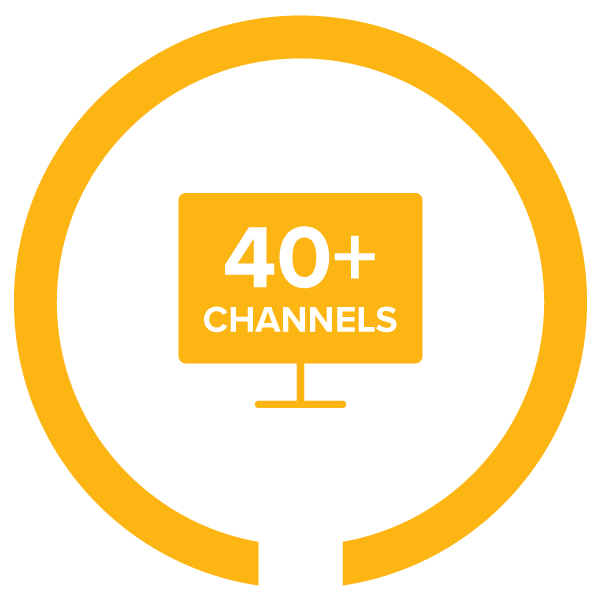 Over 40 popular HD channels including local broadcast channels. Click here to view the channel lineup.